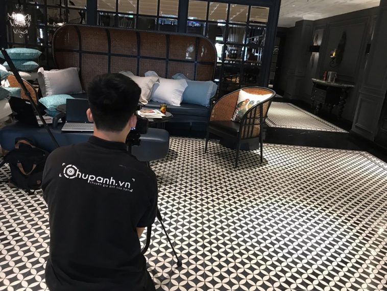 Chuẩn bị bối cảnh và thiết lập không gian chụp, sử dụng thiết bị hiện đại và đội ngũ chuyên nghiệp để đảm bảo chất lượng hình ảnh.